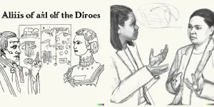 DALL·E prompts. Left: line drawing of AI predictions from the past. Right: sketch of researchers discussing AI 10 years ago.