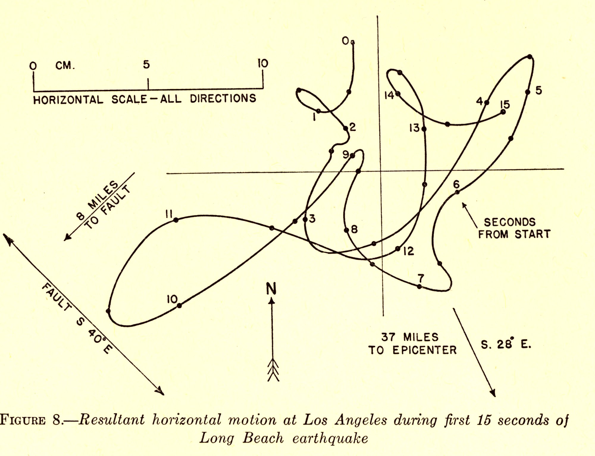 Resultant horizontal motion at Los Angeles during first 15 seconds of Long Beach earthquake. Courtesy NOAA.