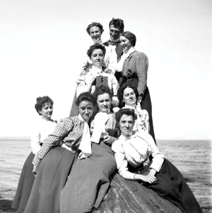 Theresa Babb (1868–1948). Friends and family of Theresa P. Babb at the shore in midcoast Maine, c. 1900.