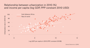 This is especially true of sub-Saharan Africa. Many African nations are reaching relatively high levels of urbanization without nearly the same income gains achieved in other regions.