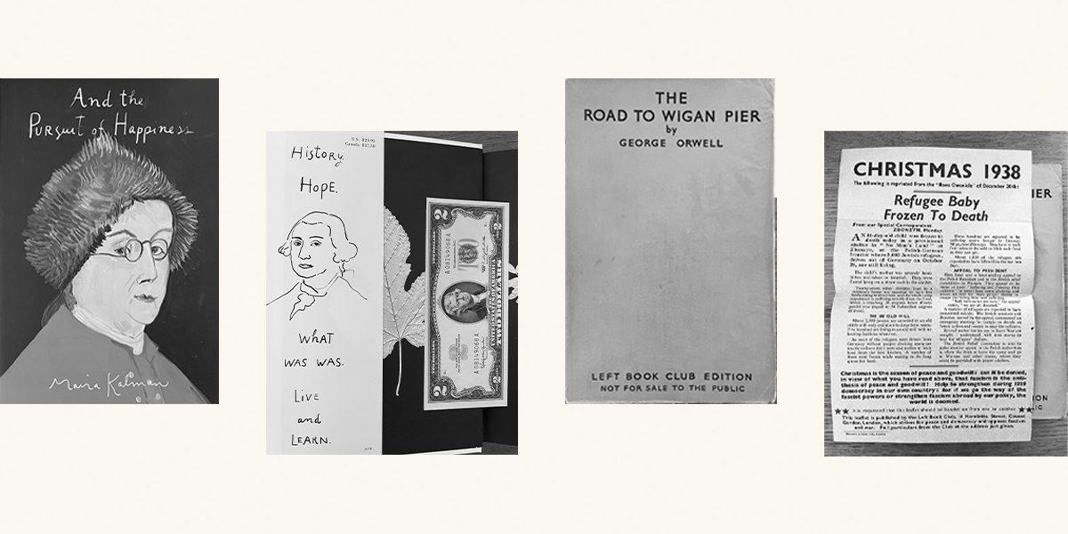 The other piece of ephemera was a single broadside, folded in half, titled “CHRISTMAS 1938.” The subtitle: “Refugee Baby Frozen to Death.” What follows is a description of 5,000 Jewish refugees at the Polish-German border, suffering like the impoverished British citizens in Orwell’s account, and as I read it, I am there with Orwell and this anonymous club member — My god! It’s Christmas of 1938, and I’m there with them!